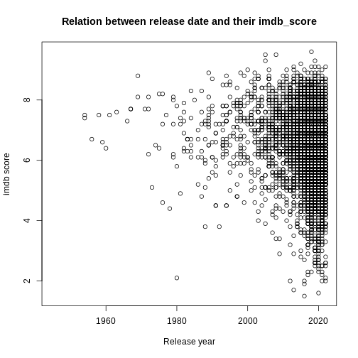 plot(movieSerie_plotting$release_year, movieSerie_plotting$imdb_score,